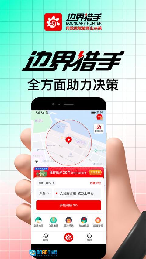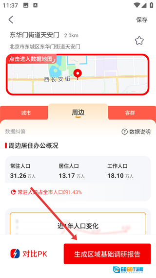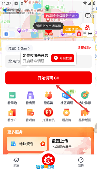 2、进入调研页面后,点击【开始调研GO】按钮,即可进入区域数据页面。