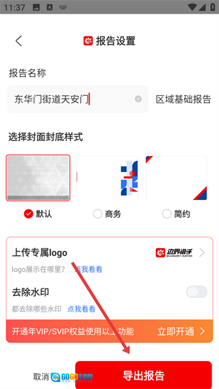 4、进入报告设置页面后,先完成报告名称、封面样式等相关设置,随后点击【导出报告】按钮,就能导出对应的调研报告了。