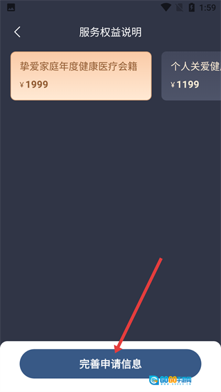 在服务权益说明页面,选定会籍类型后点击【完善申请信息】按钮,即可进入个人信息填写界面。