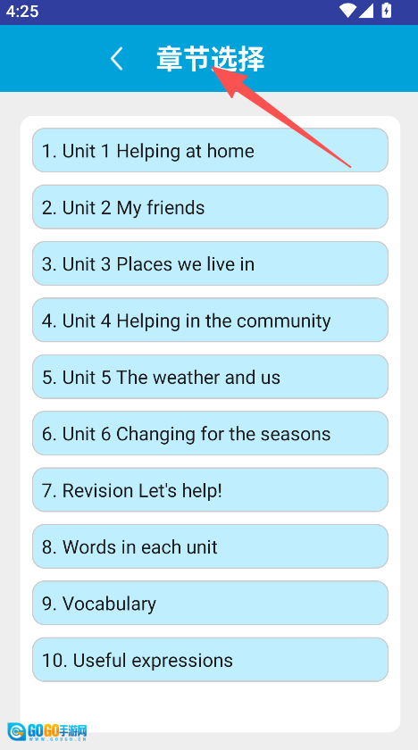 1、拥有章节选择功能,可支持单元章节的选取,便于学生依据单元来推进学习。