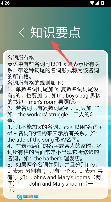 3、查看知识要点,学习语法等知识,巩固英语要点。