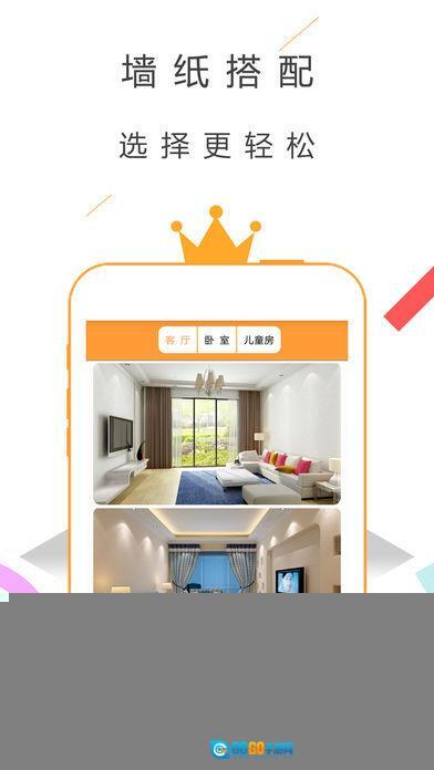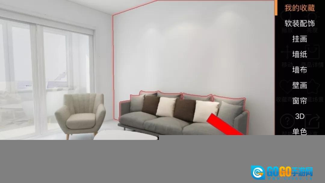 打开墙纸秀,在“墙纸搭配”子功能中选择一个房间场景,点选墙面,下方会弹出可更换的墙纸商品。