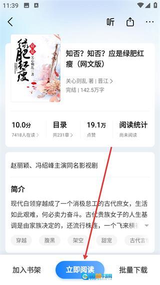 4、在详情页面点击【立即阅读】按钮,即可开启《知否?知否?应是绿肥红瘦(网文版)》的阅读之旅。