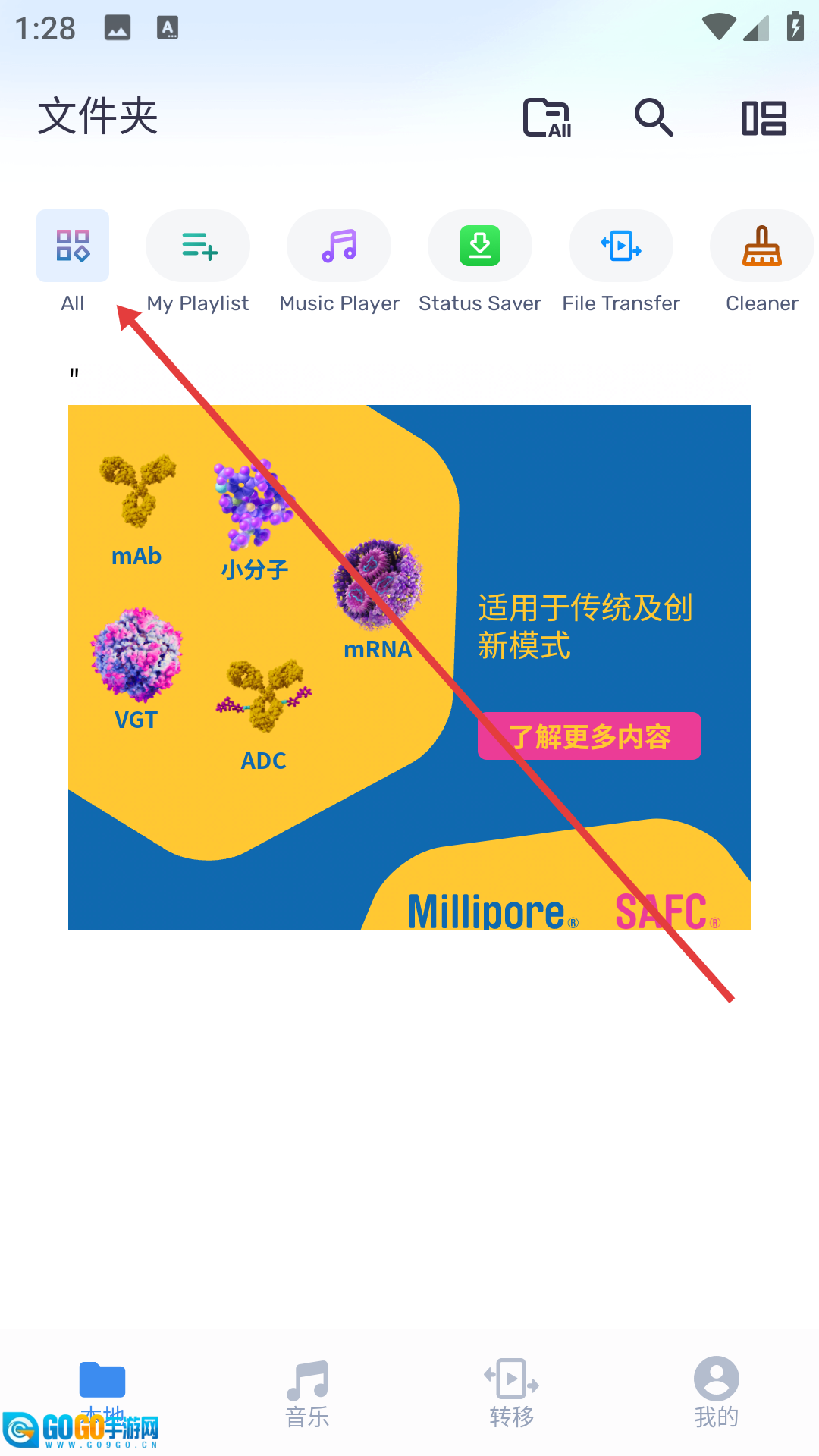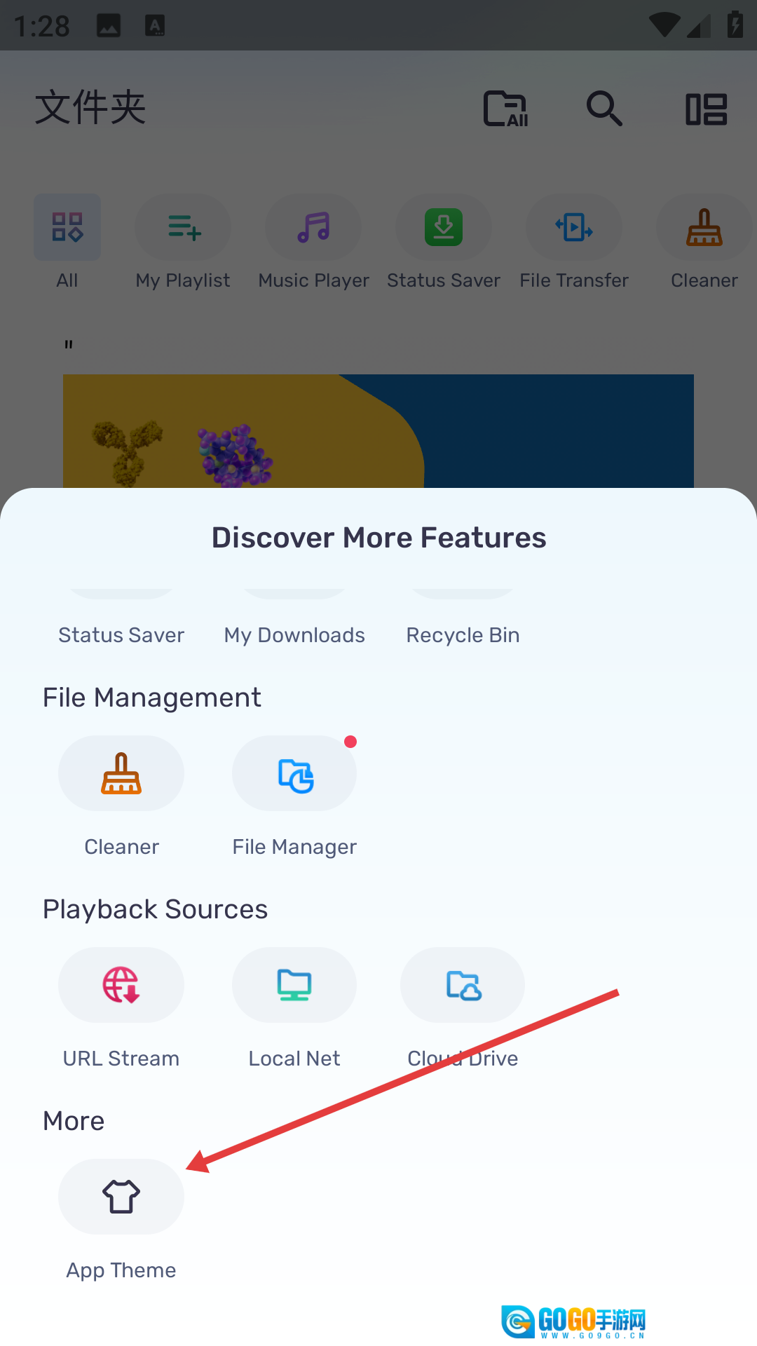 1、在文件夹界面点击【All】选项,待功能菜单弹出后,选择其中的【App-Theme】,即可进入应用主题的设置页面。