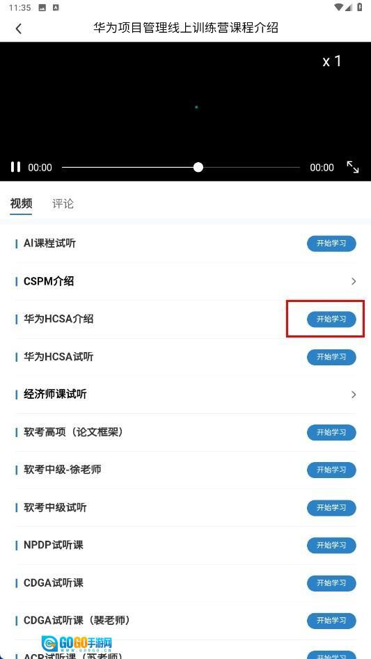 4、进入课程学习页面后,能够观看课程视频,例如华为项目管理线上训练营的课程介绍视频。