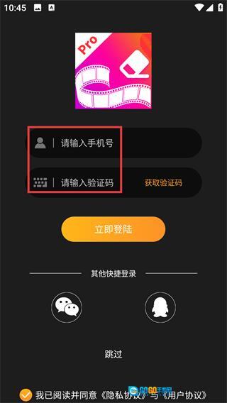 3、在登录界面填写【手机号码】,点击【获取验证码】按钮后输入收到的验证码内容。