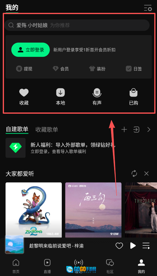 在个人中心,别忘记创建并管理你自己的自建歌单和收藏歌单,另外通过导入外部歌单的任务,还可以领取绿钻之类的福利。