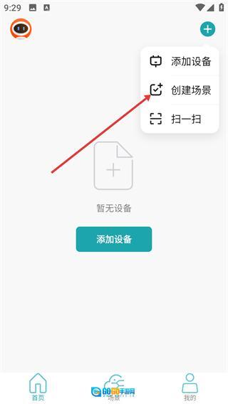 1、点击右上角的“+”按钮,在弹出的菜单里选择【创建场景】这一选项,即可进入场景创建页面。