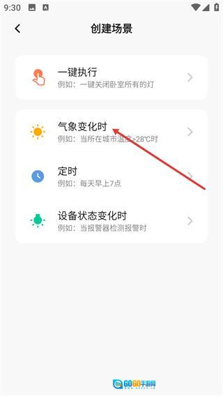 2、在创建场景页面选择【气象变化时】类型,进入该类型的场景配置界面。