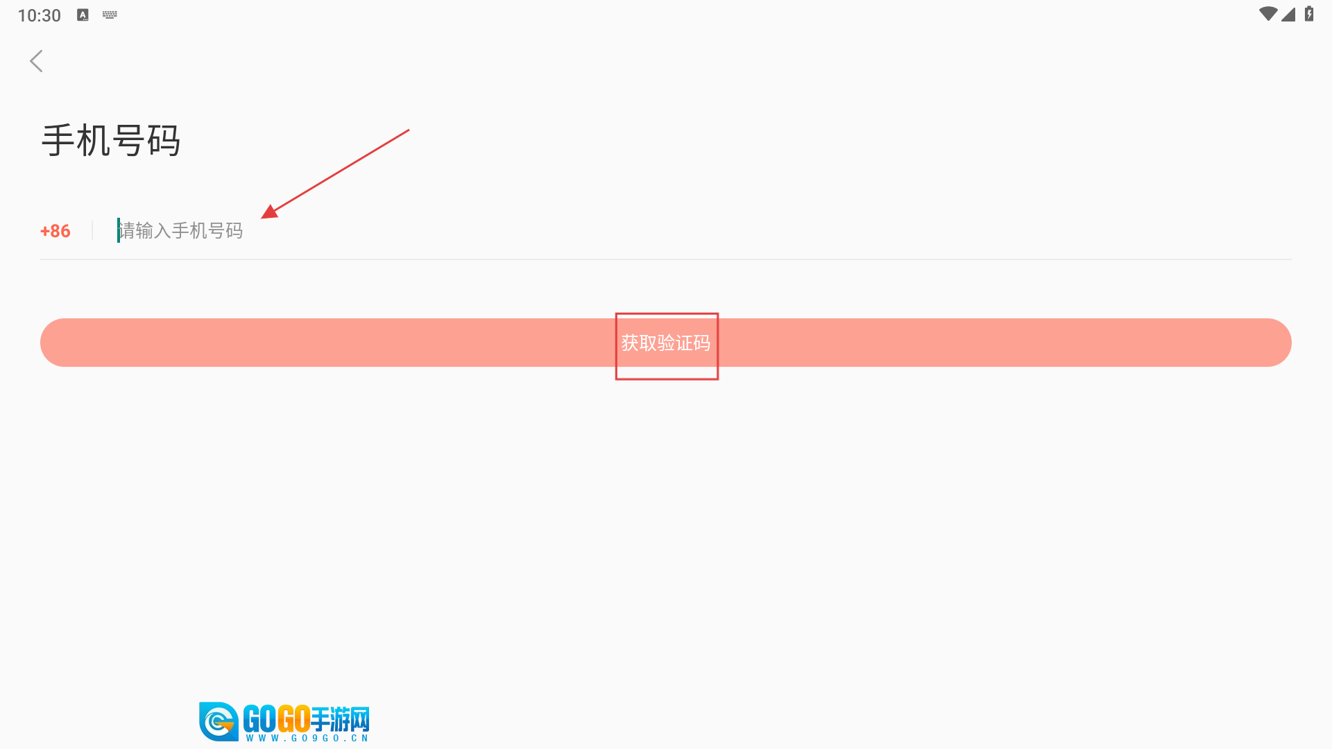 3、选择手机号登录方式后,在【请输入手机号码】输入框中填写手机号,接着点击【获取验证码】功能按钮。