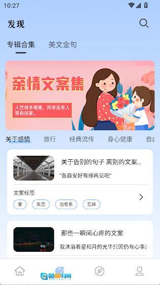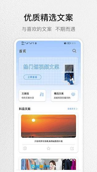 文案馆是一款专注于文字创作与灵感收集的应用,非常适合热爱写作、习惯记录生活点滴,或是日常需要文案素材的用户群体。平台上汇聚了海量风格各异的句子、段落与短文,覆盖情感抒发、节日问候、社交配图文案等丰富主题。其界面设计简约清新,操作体验流畅顺滑,能让用户轻松快速地查找并保存心仪的内容。