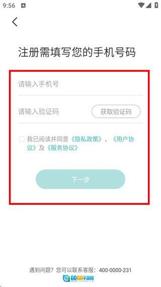 2、进入注册页面后,依次填写手机号、获取并输入验证码,勾选相关协议,然后点击“下一步”按钮。