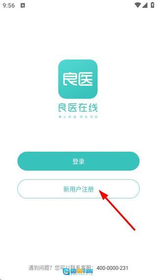 1、在良医在线的启动页面,点击新用户注册按钮,即可进入注册手机号的填写页面。