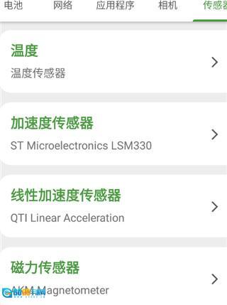 5、在传感器界面里,我们能够看到当前手机所配备的传感器类型和具体型号。