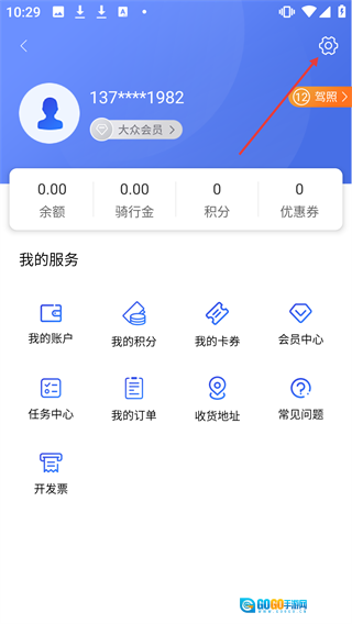 2、在个人页面点击设置图标可进入设置界面。