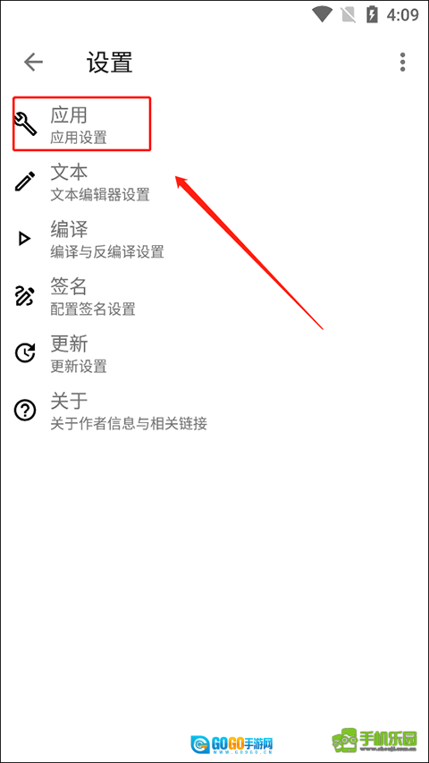 3.选择应用设置:进入设置菜单后,找到并点击“应用(Application)”选项,该选项涉及软件自身的相关设置。