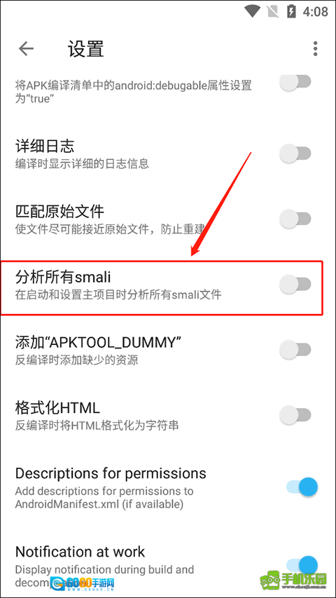 5.确认启用:检查“分析所有smali”选项的勾选开关是否处于“开启”状态,以此确认该功能已成功启用。