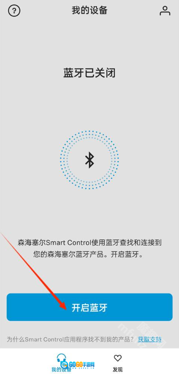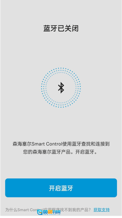 1、打开smartcontrol森海塞尔的首页,接着开启设备蓝牙功能,同时请确保耳机的蓝牙也处于开启状态,这样才能顺利完成配对操作。