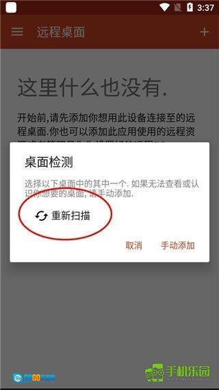 3、此时会弹出如下界面,我们只需点击“重新扫描”就行,当然你也可以选择手动添加。