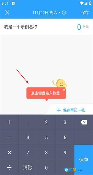 打开软件后,进入数据记录界面,界面上会显示示例名称以及输入数量的提示信息,此时点击键盘输入数量,即可开始录入数据。