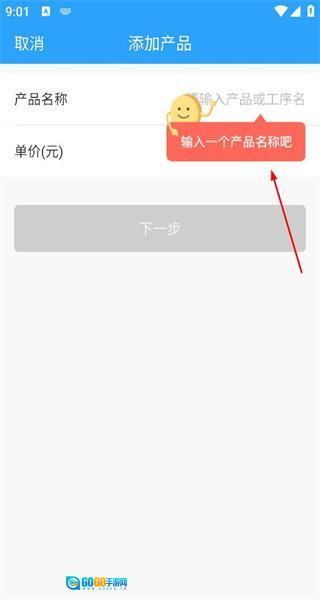 3、进入添加产品的界面后,能看到用于填写产品名称和单价的输入框,此时会出现输入产品名称的提示,接下来就可以着手添加新的产品信息了。