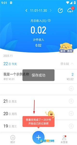 完成数据录入操作后,进入统计界面,当看到月总收入的显示以及保存成功的提示时,即可确认记录已顺利保存,之后可以继续开展其他相关操作。