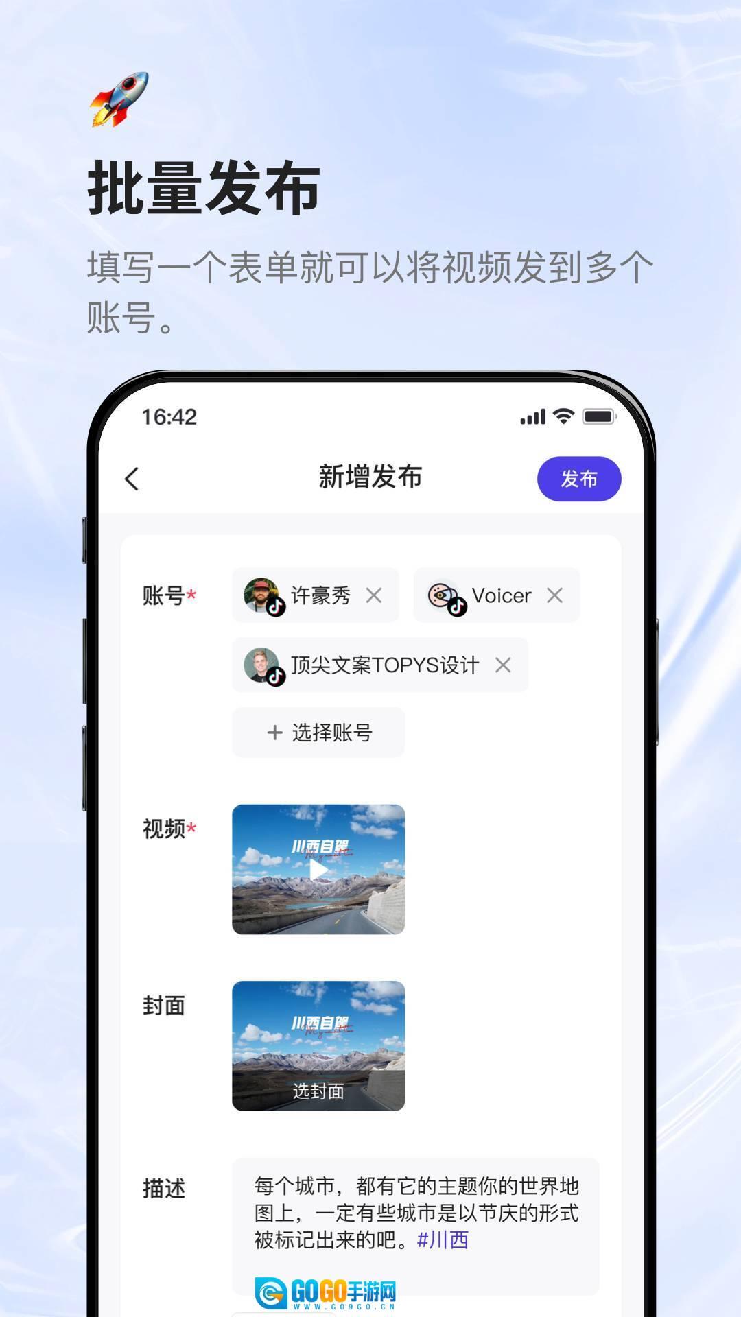 2.一键多平台分发:内容创作完成后,用户可勾选目标平台及账号,一键同步发布图文、视频或动态。例如,一篇小红书笔记可同时发布至抖音、微博、头条号,视频作品可同步至B站、快手、微信视频号,且支持根据平台特性调整标题、标签、封面等参数,实现“千人千面”的精准分发。
