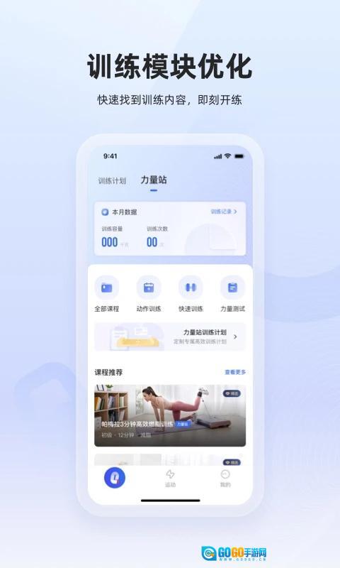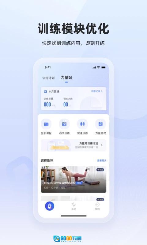 2.真人语音陪练课程:所有训练课程都有专业教练真人语音指导,实时纠正动作细节并提示发力要点,让训练更安全、效果更好。比如在深蹲训练时,语音会提醒“膝盖别超过脚尖”“臀部往后坐”这些关键动作规范。