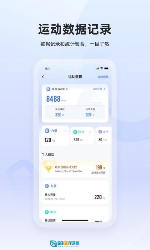 3.多设备数据同步:可与GYMGEST跑步机、力量站等智能设备实现深度联动,自动同步跑步距离、速度、力量训练重量等运动数据,并生成跨设备的综合报告。比如当用户完成一次跑步加力量训练的组合运动后,系统会将这两项运动的数据进行整合,进而计算出总卡路里消耗以及肌肉疲劳度。