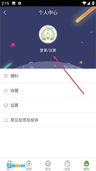 1、进入个人中心页面后,点击【登录/注册】选项,即可跳转至登录注册界面。