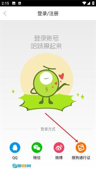 在登录注册界面选择【搜狗通行证】这一登录方式,即可进入登录页面。