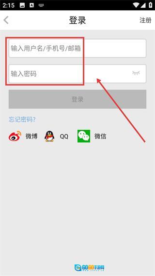 3、在登录页面输入用户名/手机号/邮箱和密码。