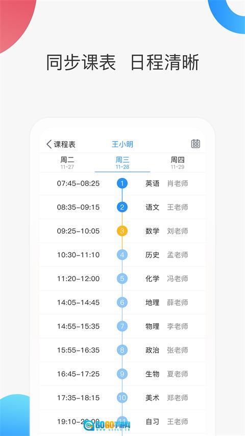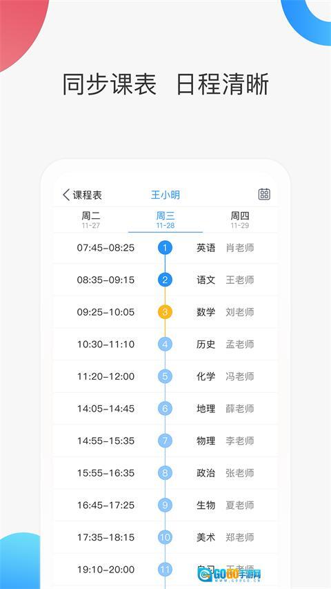 2.核心功能入口:登录进入系统后,首页会呈现“消息中心”“班级课表”“作业追踪”“学业成绩”等功能模块。点击“消息中心”,就能查看教师推送的通知、作业相关提醒以及私信内容;进入“班级课表”模块,可实现与校方课表的同步,并且支持按照周视图或日视图进行切换查看;在“作业追踪”板块里,家长能够实时了解作业的具体内容、孩子的提交状态以及教师给出的批改反馈信息。