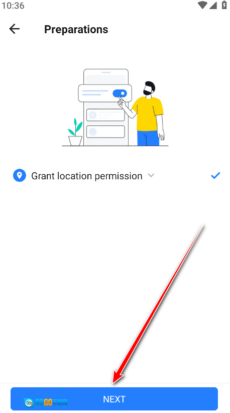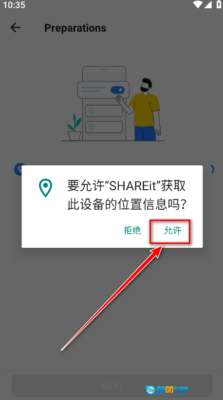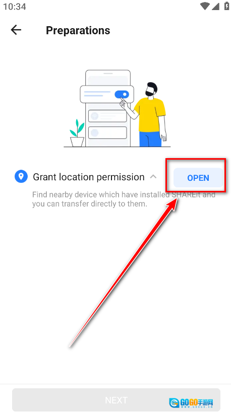 开启GPS定位功能以及蓝牙(蓝牙用于扫描接收方的设备),随后点击“下一步”按钮。
