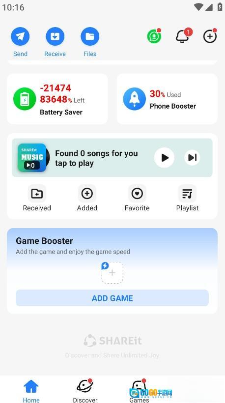 2、在首页界面,主要用于文件的发送、接收以及管理,以【文件】为例,