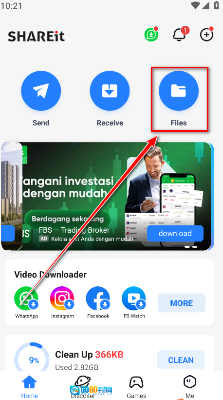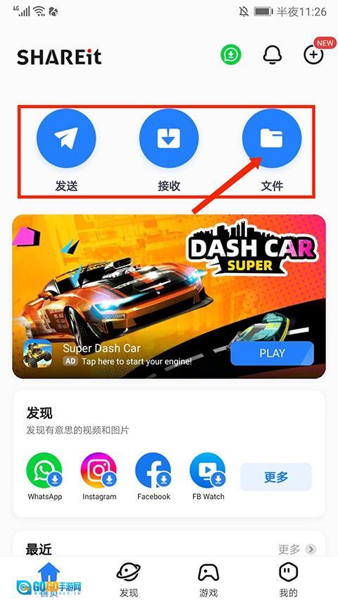 1.打开茄子快传,点击Files。