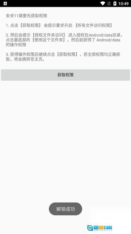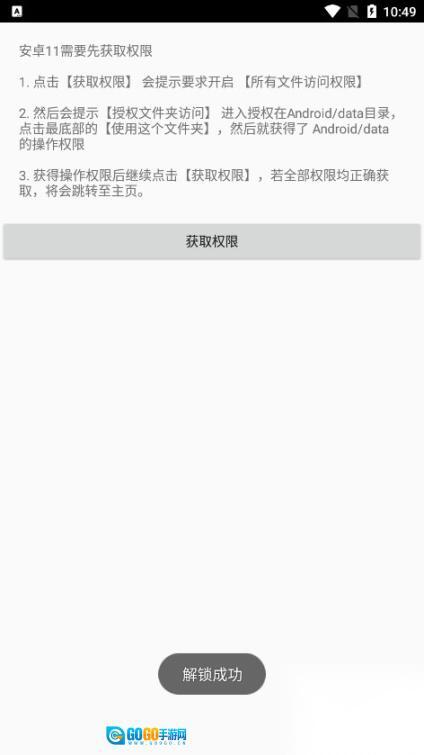 2、若游戏启动时发生卡屏情况,可通过手机设置里的应用软件管理功能找到GFXTool,为其开启手机存储卡的管理权限,之后就能正常打开游戏了。