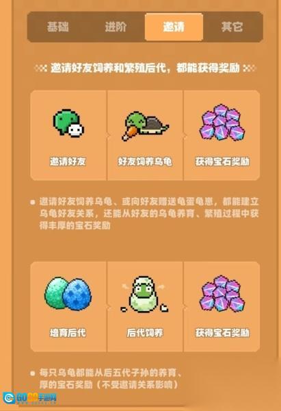 ①邀请好友加入二级团队,好友在参与乌龟养育、繁衍的过程中,你都能获得宝石奖励。