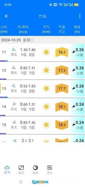 可以查看浪高、浪周期、浪方向,以及对应的3个分浪数据。
