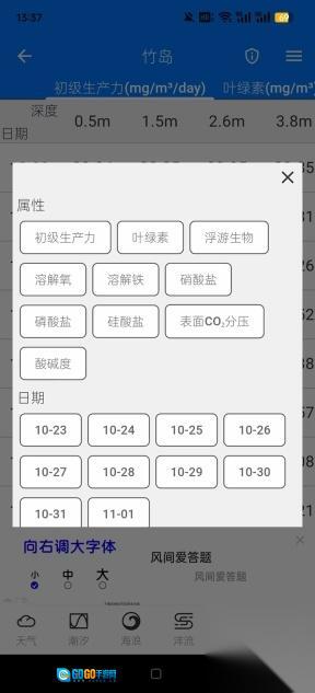 支持查看海洋初级生产总值、叶绿素以及浮游植物等各类海洋微生物数据。