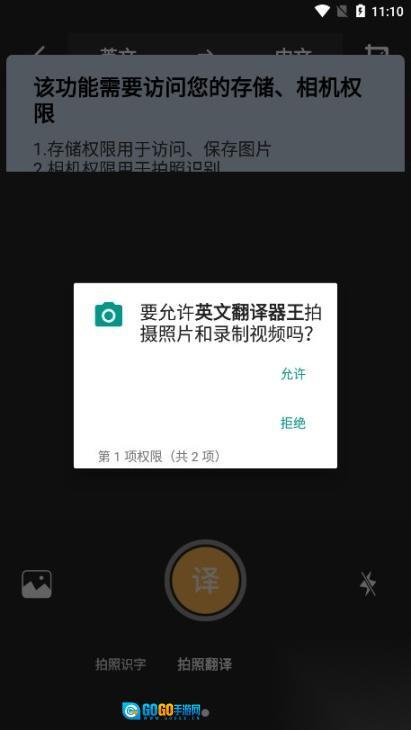 3、【拍照翻译】功能需获取移动端或PC电脑的拍摄权限,通过拍照的方式来获取内容。