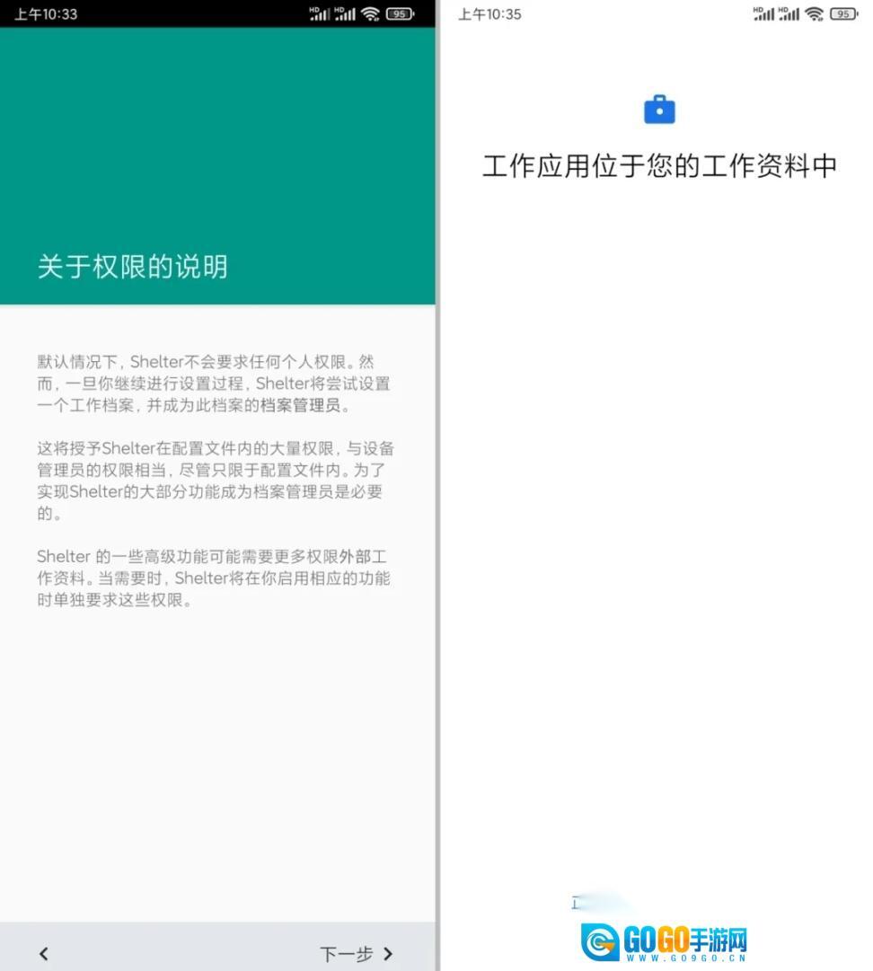 是基于Android的WorkProfile功能提供隔离的空间,主要用途包括:在工作配置文件中安装应用