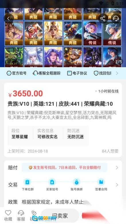 5、收到账号后请尽快登录游戏进行验证,平台将向卖家打款,且账号提供永久包赔服务。