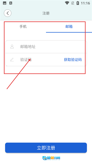 4、通过邮箱注册账号时,需要填写【邮箱地址】,随后点击【获取验证码】,将收到的验证码填入对应位置后,点击【立即注册】,就能完成邮箱渠道的账号注册流程。
