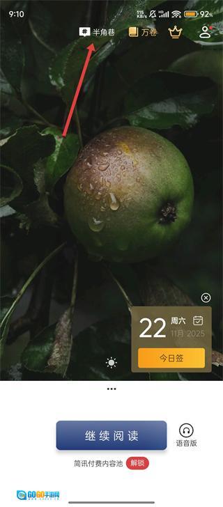 1、打开简讯后,点击顶部的【半角巷】,进入社区板块,这是发布作品的第一步哦。