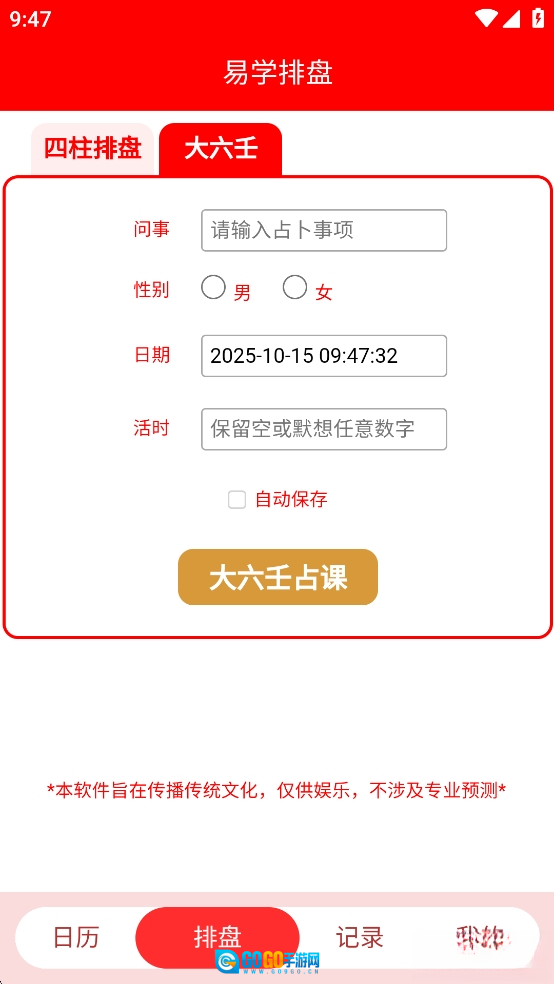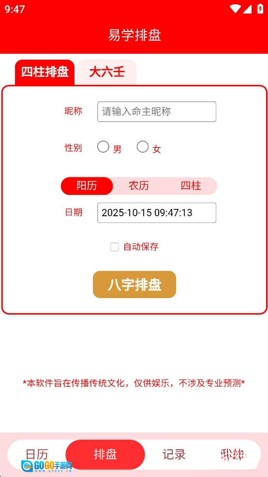 《易学万象》是一款实用的万年历黄历应用,打开即可查阅详尽的黄历内容,支持公历与农历对照,节气、宜忌等信息清晰直观。此外,软件具备排盘功能,用户只需填写姓名、性别及出生日期,就能生成八字排盘结果;需特别说明的是,该结果仅作娱乐参考,不构成专业预测意见。