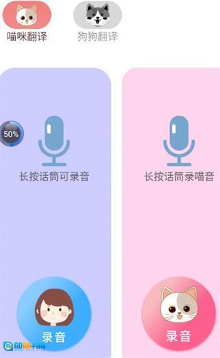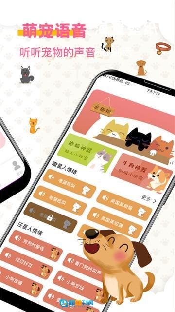 2、【语音库】:可对所有猫咪、狗狗品种的叫声进行翻译,还提供多种不同的声音选项;里面包含委屈、开心等各类猫狗叫声,能帮助大家了解宠物的心情,是一款逗弄宠物的实用神器。