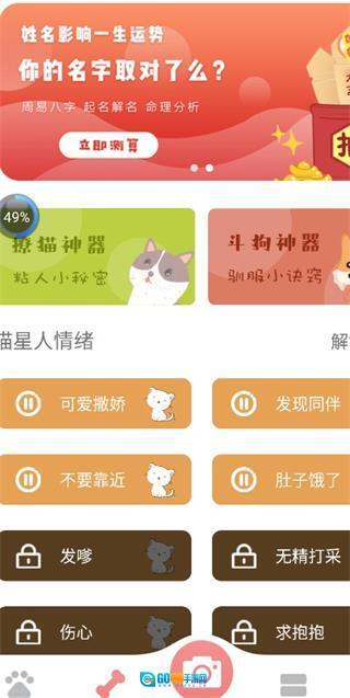 4、还能选择使用撩汪、撩猫功能,其中涵盖了多种对应宠物猫狗情绪的内容,趣味性十足。