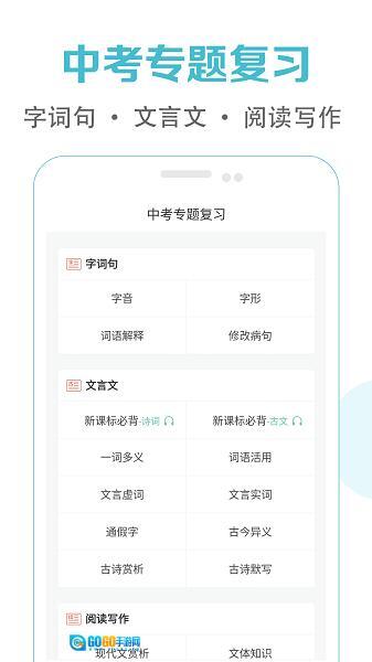 5.中考专项训练模块:按“字词句-阅读写作-文言文”三大板块划分,每个板块下设多个子专题。例如,“阅读写作”板块包含“主旨题解题技巧”“议论文结构模板”等课程,通过“真题解析-方法总结-模拟训练”三步法帮助用户掌握应试策略。