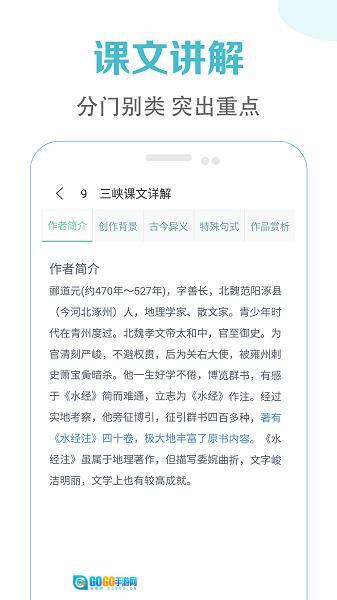 1.内容权威性:紧密围绕教育部统编教材和《义务教育语文课程标准》进行研发,所有的解析内容与习题题目都经过一线教师团队的严格审核,保证知识点和教学大纲完全相符。以文言文注释为例,参考了《古汉语常用字字典》以及多个不同版本教材的注释内容,从而防止因为版本不同而产生理解上的偏差。